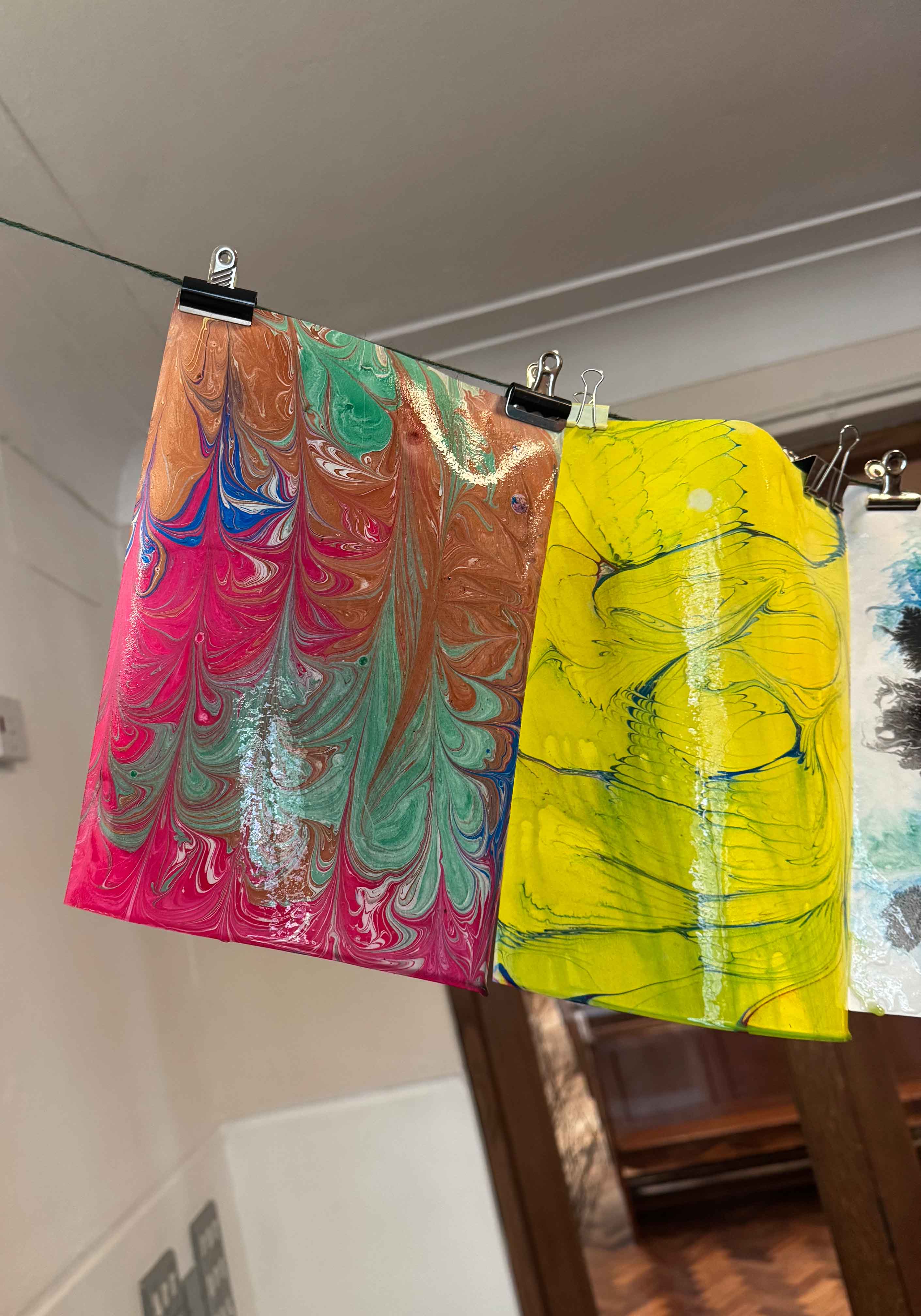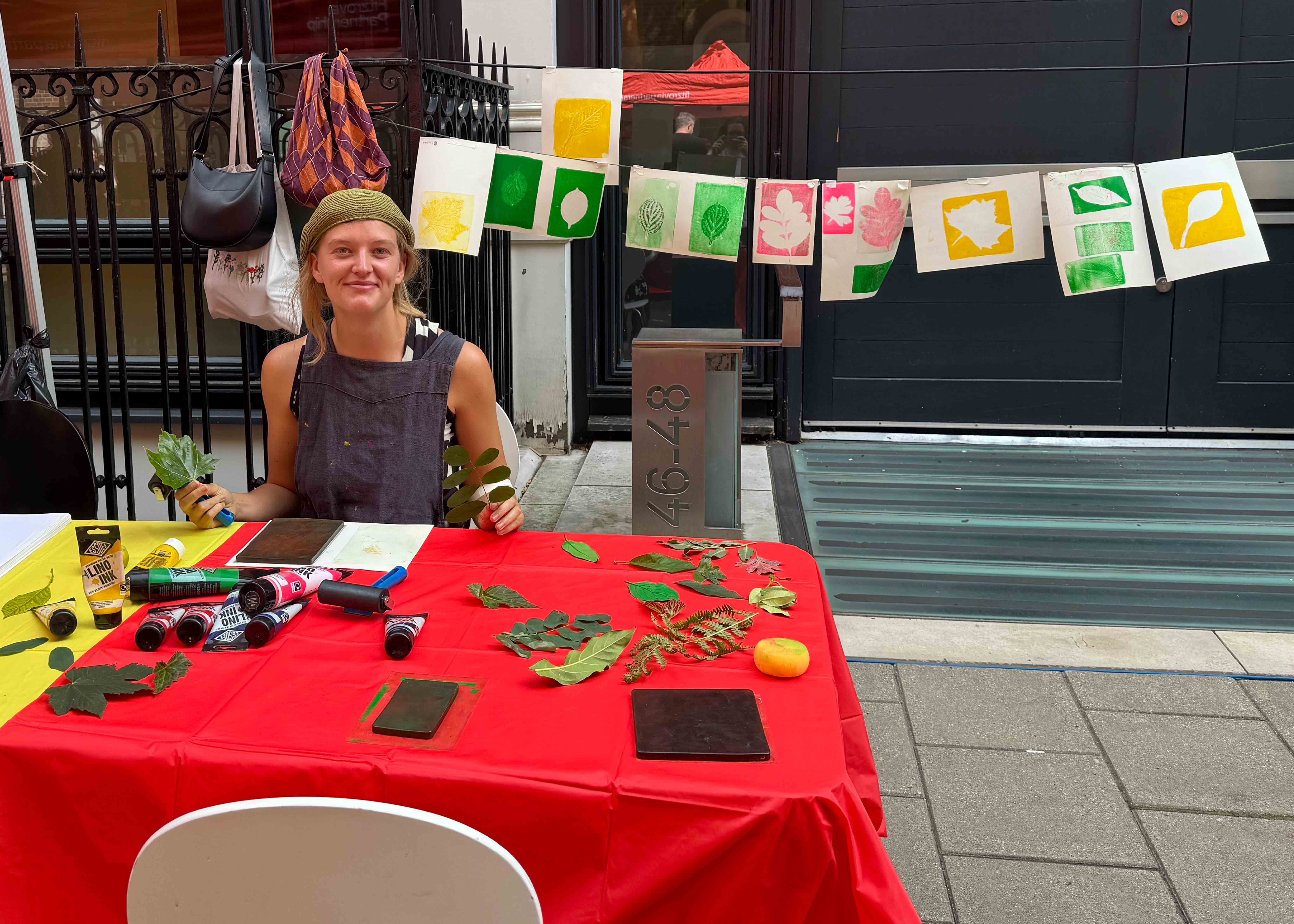 We transformed the church’s ‘Sanctuary’ into a creative hub, offering workshops that delved into diverse artistic processes: orizomegami, paper marbling, stencilling, screen printing, cyanotyping and gyotaku. Later, as part of the Fitzrovia Fete, we extended the creative fun with Gelli plate printing. The format meant that at 4pm, participants and a group of enthusiastic volunteers joined us for a 90-minute session. We provided all the materials needed for them to learn and experiment with each technique before gathering for a communal meal. The food was a feast of flavours – Greek specialities from the local market, home-cooked delights from the church’s own culinary talents, and Indian food from the nearby YMCA. This shared experience of creating and eating together was a powerful way to foster both stimulation and connection.